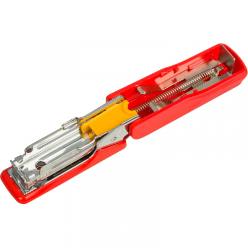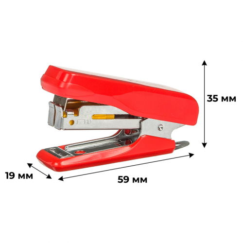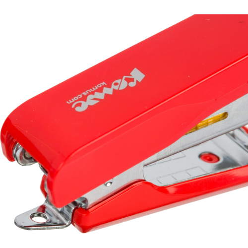 Степлер Комус выполнен в пластиковом корпусе красного цвета и обладает компактными размерами. Рабочие компоненты изготовлены из высококачественной стали. Степлер совместим со скобами №10, одновременно сшивая до 10 листов бумаги плотностью до 80 г/кв.м. Модель оснащена антистеплером, механизмом быстрой загрузки скоб и индикатором наполненности лотка для скоб, что делает ее очень удобной в применении. Степлер сшивает как закрытым, так и прямым типом сшивания. Закрытый тип сшивания, при котором ножки скобы загибаются внутрь, дает возможность надежно хранить сшитые документы на протяжении длительного времени. Прямой тип сшивания, при котором ножки скобы не загибаются, позволяет прикреплять объявления или документы к мягкой поверхности, например к пробковой доске. Для этого достаточно раскрыть степлер на 180 градусов и закрепить документ. Вместимость лотка для скоб: 50 скоб размером №10. Глубина закладки бумаги: 25 мм.