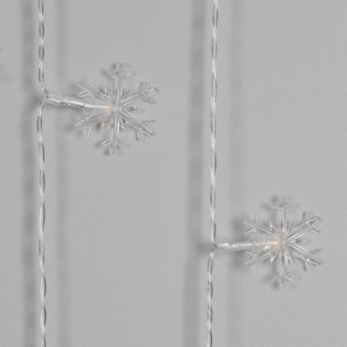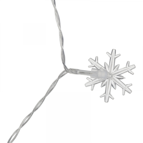 Светодиодная гирлянда для использования внутри помещений. Незаменимый аксессуар для создания новогоднего настроения, а также любого декора и атмосферы, как праздничной, так и романтической. Выполнена в классическом виде - прямая линия со светодиодными лампочками в форме снежинок. Безопасна при использовании как на новогодней ели, так и мебели, шторах и т .д. Количество лампочек: 30. Цвет лампочек: разноцветый - 8 цветов. Длина: 9 м. Режим свечения: вспышка. Степень защиты: IP20. Тип питания: батарейка и подключение к сети. Соединяемость: нет.