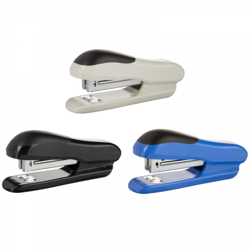 Степлер бренда M&G - один из необходимых помощников для работы с документацией для любых целей. Компактный и надежный настольный степлер выполнен в пластиковом корпусе. Рабочие компоненты механизма изготовлены из высококачественной стали. Одним нажатием степлер легко сшивает до 20 листов бумаги плотностью до 70 г/кв.м, что делает степлер энергосберегающим. Глубина закладки бумаги: 80 мм. Загрузка скоб: фронтальная. Виды сшивания: открытый и закрытый. Совместим со скобами № 24/6. Размер степлера: 124x53x33 мм. Гарантийный срок: 2 года. В комплекте: скобы № 24/6. Цвет представлен в ассортименте: синий, серый, черный. Поставляется без возможности выбора цвета указанного ассортимента. Для эффективного сшивания максимально допустимого объема бумаги необходимо расположить степлер на горизонтальной твердой поверхности, прикладывая усилия, плавно надавить на рычаг (при необходимости двумя руками), разномерно распределяя усилия по поверхности рычага.