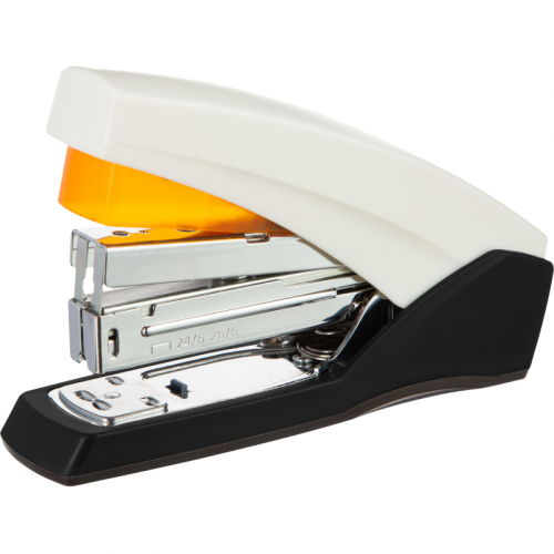 Степлер бренда M&G - один из необходимых помощников для работы с документацией для любых целей. Компактный и надежный настольный степлер выполнен в пластиковом корпусе. Рабочие компоненты механизма изготовлены из высококачественной стали. Одним нажатием степлер легко сшивает до 25 листов бумаги плотностью до 70 г/кв.м, что делает степлер энергосберегающим. Глубина закладки бумаги: 30 мм. Загрузка скоб: горизонтальная. Виды сшивания: открытый и закрытый. Совместим со скобами № 24/6. Размер степлера: 135x38x90 мм. Гарантийный срок: 2 года. В комплекте: скобы № 24/6. Цвет: белый.