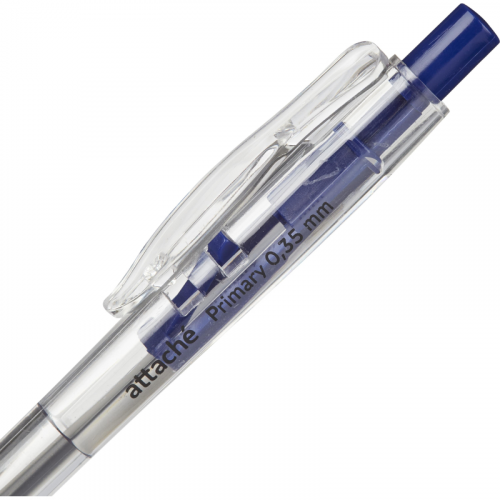 Автоматическая шариковая ручка Attache Economy Primary выполнена в пластиковом корпусе. Резиновая манжетка предотвращает скольжение пальцев при письме. Прозрачный корпус позволяет контролировать расход чернил. Стержень синего цвета с высококачественными чернилами. Конусообразный наконечник, толщина линии письма - 0,35 мм. Форма корпуса: круглая. Ручка обеспечивает легкое и мягкое письмо, яркие и насыщенные линии.