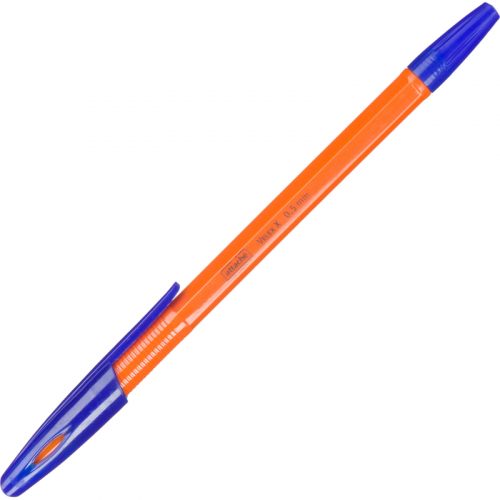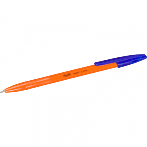 Ручка шариковая Attache Velex X, синего цвета. Модель представлена в классическом пластиковом корпусе оранжевого цвета. Комплектуется стержнем с игольчатым наконечником. Длина стержня 139 мм. Диаметр пишущего узла 0,7 мм позволяет наносить тонкие линии толщиной 0,5 мм. Заправлена масляными чернилами синего цвета, которые обеспечивают мягкое и аккуратное письмо.