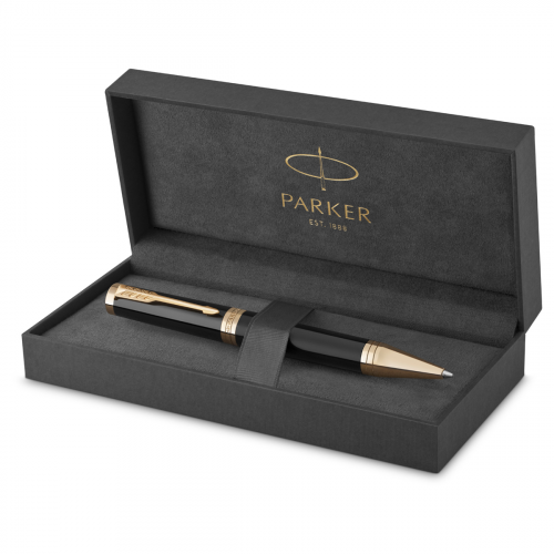 Подарочная шариковая ручка Parker из коллекции Ingenuity Black GT выполнена из латуни и покрыта чёрным блестящим лаком. Декоративные элементы отделаны позолотой. Изделие отлично подойдёт в качестве подарка как для коллеги, так и для руководителя. Диаметр пишущего узла составляет 1 мм, толщина линии – 0,8 мм. Ручка упакована в премиальную подарочную коробку Parker с откидной крышкой. Укомплектована шариковым стержнем чёрного цвета.
