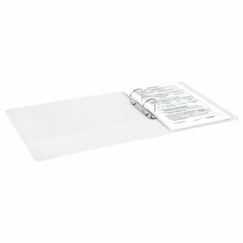 Папка стандартного формата А4 вмещает до 400 листов. Изготовлена из плотного картона с покрытием ПВХ толщиной 2 мм. Лицевая и боковая стороны папки снабжены прозрачными карманами, а на внутренней стороне имеется карман из ПВХ. Ширина корешка составляет 65 мм. Папка оснащена двумя кольцами D-образной формы, которые обеспечивают надежное хранение документов. В неё можно вставить файлы или проколотые дыроколом документы. Допускается влажная обработка поверхности. Каждая папка упакована в индивидуальный пакет.