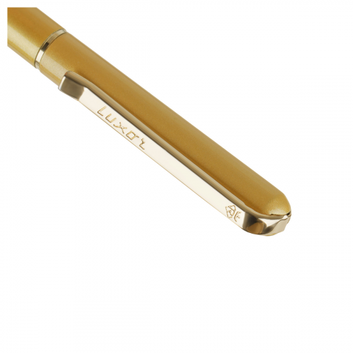Luxor Alenia – изысканная подарочная шариковая ручка с синими чернилами. Тонкий, аккуратный золотистый корпус и тесненный клип придают изящности, а входящее в состав алюминиевое покрытие отвечает за прочность изделия. Ручка оснащена поворотным механизмом, внутри которого расположен пишущий стержень диаметром 1,00 мм. Модель идеально подходит для быстрого стиля письма. Ручка упакована в брендированный подарочный футляр.