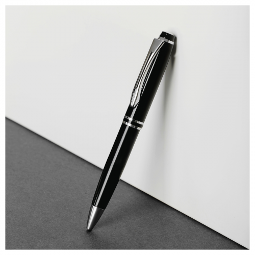 Шариковая ручка Luxor Trident представляет собой идеальное сочетание матового черного цвета корпуса и хромированных деталей. Модель выполнена из прочного и качественного покрытия сплава на основе меди (латунь). Стержень Insta flow Neotec. Пишущий узел диаметром 0,7 мм позволяет использовать ручку для быстрого и комфортного письма. Модель оснащена поворотным механизмом. • Цвет: синий; • Диаметр пишущего узла: 0,7 мм; • Форма корпуса: круглая.