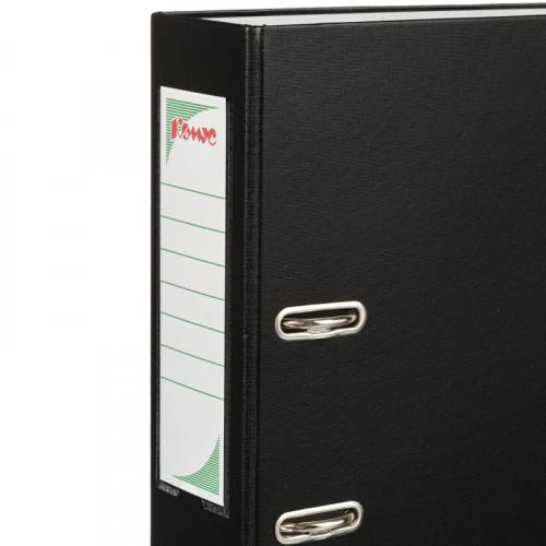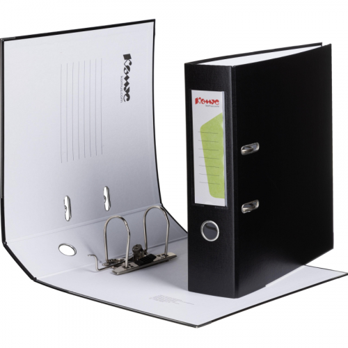 Папка-регистратор 'Комус' из коллекции 'Экономи' с арочным механизмом изготовлена из плотного картона, внешняя поверхность покрыта бумвинилом, внутренняя - бумагой. Нижний край папки защищен металлическим уголком. Ширина корешка - 80 мм, цвет черный. Формат А4+. Арочный механизм произведен в Чехии. Папка-регистратор вмещает до 600 листов стандартной плотности. Папки-регистраторы используются в офисах, государственных учреждениях или дома для удобного хранения и организации большого количества документов. Законодательные и технические документы