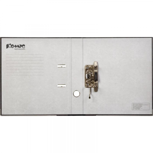 Папка-регистратор 'Комус' с арочным механизмом формата А4 изготовлена из плотного картона, покрытого фактурной бумагой под мрамор, произведенной в Великобритании. Нижние края защищены металлическим кантом. Корешок - бумвинил черного цвета, ширина - 50 мм. Металлический арочный механизм не съемный, произведен в Чехии. Специальные прорези на крышке не дают папке открываться при большом количестве вложенных документов. На корешке есть карман со сменной этикеткой, предусмотрено кольцо для удобного захвата. Папка-регистратор 'Комус' вмещает до 350 листов стандартной плотности. Папка-регистратор - незаменимый инструмент для систематизации и хранения большого количества документов в офисе, государственном учреждении и дома. Законодательные и технические документы