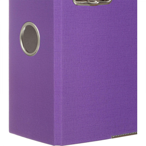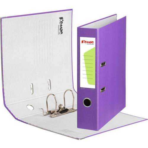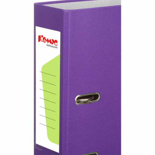 Папка-регистратор с арочным механизмом 'Комус' предназначена для хранения большого количества документов в одном месте. Формат А4. Изготовлена из плотного картона, покрытого бумвинилом фиолетового цвета. Внутренняя вклейка бумажная, предусмотрено место для записей. Арочный механизм произведен в Чехии. Нижние края папки защищены от повреждений металлическим кантом. На корешке шириной 75 мм есть карман со сменной этикеткой и кольцо для захвата. Благодаря прорезям для колец на внешней крышке папка-регистратор 'Комус' остается закрытой даже при большом количестве бумаг. Папка вмещает до 480 листов. Цвет папки может быть насыщенным или более светлым в зависимости от производителя папок. Законодательные и технические документы