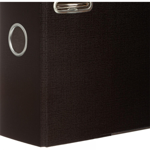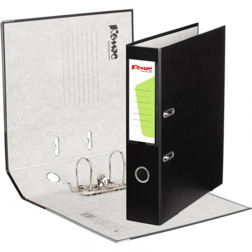 Папка-регистратор 'Комус' из коллекции 'Экономи' предназначена для хранения большого количества документов в одном месте. Формат А4. Изготовлена из плотного картона, покрытого бумвинилом черного цвета. Внутренняя вклейка бумажная. Арочный механизм произведен в Чехии. Нижние края папки защищены от повреждений металлическим кантом. На корешке шириной 75 мм есть карман со сменной этикеткой и кольцо для захвата. Благодаря прорезям для колец на внешней крышке папка-регистратор 'Комус' остается закрытой даже при большом количестве бумаг. Папка вмещает до 480 листов. Размер кармана на корешке папки может быть разным, в зависимости от производителя папок. Цвет папки может быть насыщенным или более светлым в зависимости от производителя папок. Высота папки может отличаться в зависимости от производителя. Размеры могут быть 317х285х75 мм или 320х285х75 мм. Законодательные и технические документы