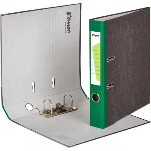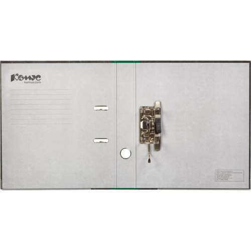 Папка-регистратор 'Комус' с арочным механизмом формата А4 изготовлена из плотного картона, покрытого фактурной бумагой под мрамор, произведенной в Великобритании. Нижние края защищены металлическим кантом. Корешок - бумвинил зеленого цвета, ширина - 50 мм. Специальные прорези на крышке не дают папке открываться при большом количестве вложенных документов. Арочный механизм произведен в Чехии. На корешке есть карман со сменной этикеткой и кольцо для удобного захвата. Папка-регистратор 'Комус' вмещает до 350 листов стандартной плотности, она станет незаменимым инструментом для систематизации и хранения большого количества документов в офисе, государственном учреждении и дома. Законодательные и технические документы