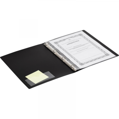 Папка на кольцах рекомендуются как для временного, так и длительного хранения, систематизации, архивирования документов. Такие папки используются в работе офисными сотрудниками различных специальностей, направлений, должностей. Можно использовать для хранения документов дома.Стильная папка на четырех кольцах Комус изготовлена из высококачественного полипропилена толщиной 1 мм. Диаметр кольца - 17 мм. Двухцветный эффект: внешняя поверхность темнO-синяя, внутренняя - черная. Формат А4. Отличается устойчивостью при вертикальном размещении. Внутри есть карман для компакт-дисков и визитных карточек. Ширина корешка составляет 25 мм. Папка на кольцах вмещает до 100 листов стандартной плотности.