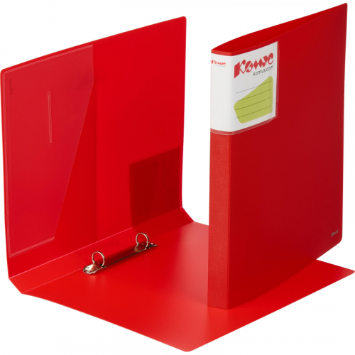Папка на кольцах рекомендуются как для временного, так и длительного хранения, систематизации, архивирования документов. Такие папки используются в работе офисными сотрудниками различных специальностей, направлений, должностей. Можно использовать для домашних документов. Папка на двух кольцах Комус из коллекции 'Шелк' выполнена из пластика толщиной 0,7 мм красного цвета. Формат А4. Обложка устойчива к царапинам и механическим повреждениям. Этикетка размещена таким образом, чтобы ее было видно с любой стороны. Внутри папки расположен пластиковый карман для документов и компакт-дисков. Для крепления листов используется механизм на двух кольцах O-типа диаметром 16 мм. Ширина корешка составляет 25 мм. Папка на кольцах вмещает до 150 листов стандартной плотности. В рамках ребрендинга производится перевод дизайна данного артикула с сохранением всех потребительских характеристик товара. На переходный период допускается поставка данной продукции в двух вариантах дизайна.