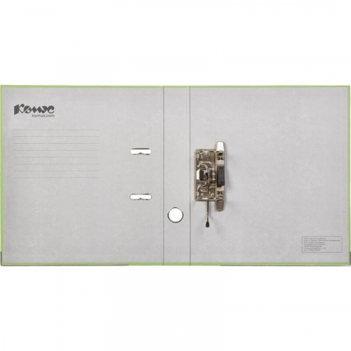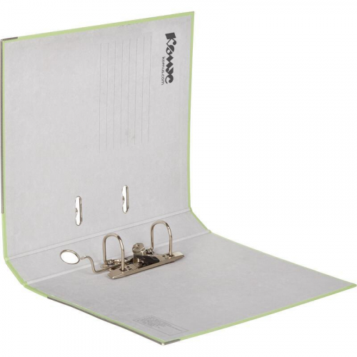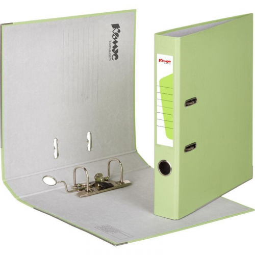Папка-регистратор 'Комус' из коллекции 'Экономи' подходит для хранения большого количества документов формата А4 в офисе, государственном учреждении и дома. Папка изготовлена из плотного картона, покрытого бумвинилом цвета лайм. Арочный механизм произведен в Чехии. Нижние края защищены от повреждений металлическим кантом. На корешке шириной 50 мм есть карман со сменной этикеткой и кольцо для захвата. Папка-регистратор вмещает до 350 листов стандартной плотности. Законодательные и технические документы