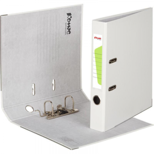 Папка-регистратор 'Комус' из коллекции 'Экономи' предназначена для хранения большого количества документов формата А4 в офисе, университете или дома. Изготовлена из плотного картона, который покрыт пластиком (бумвинилом) белого цвета. Арочный механизм произведен в Чехии. Нижние края защищены от повреждений металлическим кантом. На корешке шириной 50 мм есть карман со сменной этикеткой и кольцо для захвата. Папка-регистратор вмещает до 350 листов стандартной плотности. Законодательные и технические документы