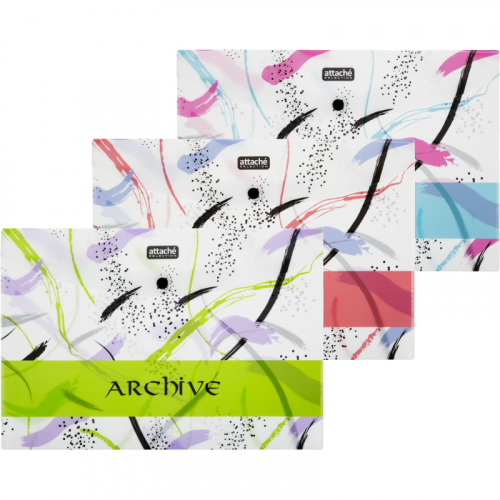 Папка-конверт A4 Attache Archive размером 223x325 мм (формат А4) изготовлена из пластика толщиной 180 мкм. Закрывается на кнопку. Удобна для хранения и переноски документов, предотвращает их смятие и загрязнение. Одна папка-конверт вмещает до 80 листов стандартной плотности. В упаковке 3 штуки. Цвет в ассортименте.