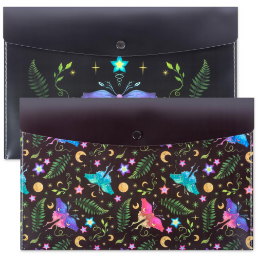 Папка-конверт на кнопке Комус Класс Сказочный лес 325x215 200 мкм (2 штуки в упаковке).Стильная деловая папка-конверт на кнопке формат А4. Папку конверт можно использовать для документов и тетрадей формата А4 и А5. Папка также может быть использована для организации и хранения медицинских документов или папка для хранения мелких принадлежностей. Можно использовать для хранения семейных документов. Обложка папки выполнена из качественного полипропилена. Компактный и стильный дизайн папки делает ее универсальным аксессуаром для офиса и учебы. Отлично подойдет в качестве подарка мужчине, женщине на любой праздник. Папку можно брать в дорожные поездки. Красивый канцтовар представлен в нескольких ярких дизайнах. Стильная канцелярская папка отлично подойдет для школы в виде папки для труда, технологии, черчения, офиса, бумаг, школьных тетрадей и рисунков А4. Удобный офисный формат в форме конверта подходит для путешествий, поездок для хранения важных документов: свидетельство о браке, паспорт, снилс, диплом. свидетельство о рождении и деловых документов, детских, многое другое.