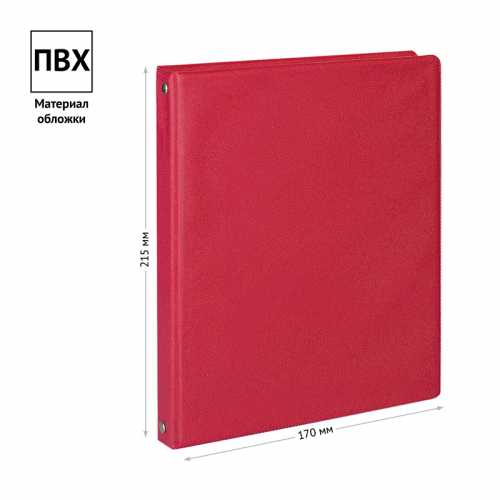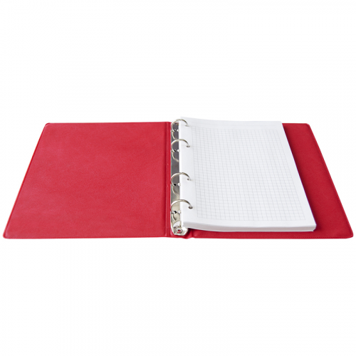 Тетрадь на кольцах BG формата А5 (215*170 мм) – незаменимый помощник в офисе и учёбе и отлично подходит для большого объёма записей. Внутренний блок – это 80 листов, офсетная бумага плотностью 60-65 г/м², белизна - 100%, линовка – клетка. Цвет бумаги блока - белый. Тетрадь имеет кольцевой механизм для быстрой смены или добавления листов, состоящий из 4 колец. Обложка изготовлена из ПВХ с прямым корешком и выполнена в красном цвете. Тетрадь упакована в пакет.