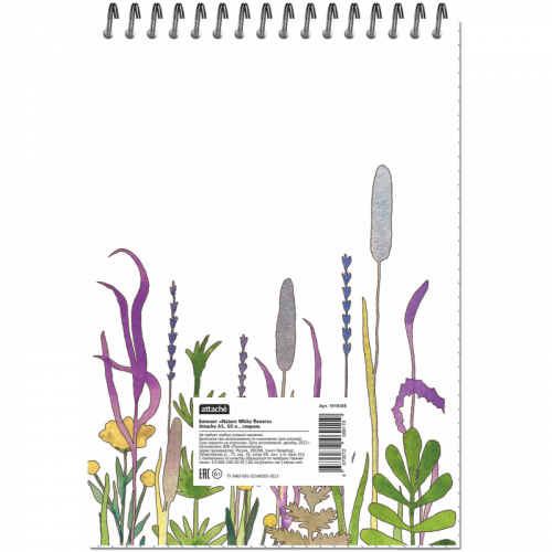 Блокнот Attache Nature White Flowers - блокнот формата А5 для ведения записей. Состоит из мягкой картонной обложки в красочном стиле и 60 листов офсетной бумаги. Листовая бумага у данного блокнота имеет белый цвет. Она разлинована 'в клетку'. Плотность блока равна 60 граммам/квадратный метр. Листы надежно крепятся с обложкой с помощью спирали, крепление располагается сверху. Блокнот не имеет перфорации и разделителей, а также фиксирующей резинки, отверстия для прошивки и полей для подписи на обложке. Общий габариты блокнота составляют 146х204 миллиметров. Дизайн блокнота Attache Nature White Flowers выполнен в белом цвете с изображением цветочков. Данный блокнот станет идеальным выбором для учебы, офисных будней или же просто как личный ежедневник. Законодательные и технические документы