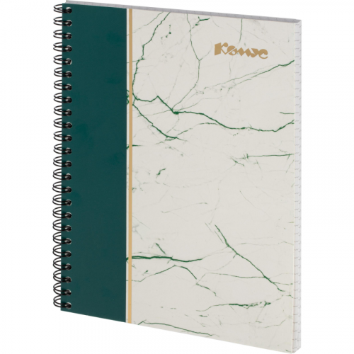Тетрадь общая А5 80л Комус МраморЗеленый клетка,80г,греб,карт,фольга,УФ-лак