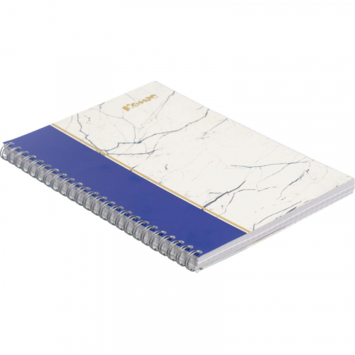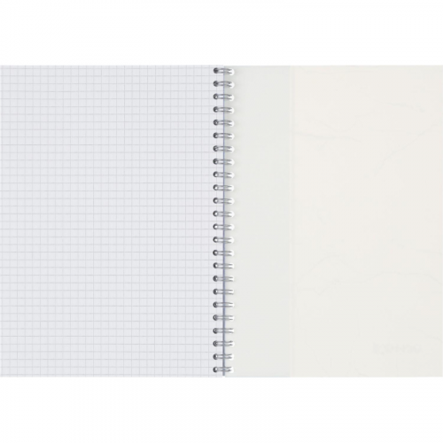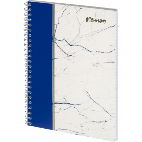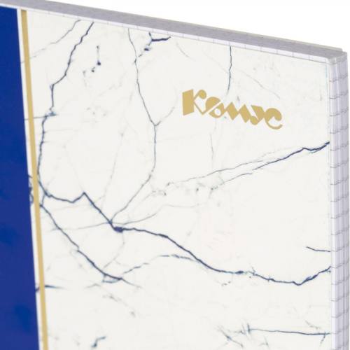 Тетрадь Комус мрамор изготовлена форматом А5 (146х204 мм). Обложка и подложка изготовлены из мелованного картона 190-210 г/м2. Блок-офсетная бумага 80г/м2, разлинованная в клетку. Количество листов в блоке-80. Тетрадь скреплена металлическим гребнем (спиралью) по длинной стороне слева. Применяется в школах, высших учебных заведениях и офисах. Законодательные и технические документы