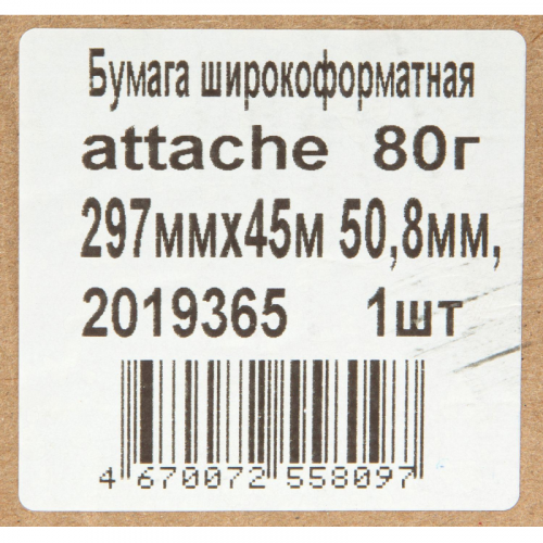 Широкоформатная бумага Attache, предназначенная для печати технической документации, инженерной и деловой графики. Совместима со струйными черно-белыми плоттерами и принтерами НP, Сanon, Еpson, Xerox, не подойдет для сольвентных плоттеров. Бумажное полотно белизной (138%) имеет размер 297 мм, что соответствует формату A3. Защитная полиэтиленовая пленка на упаковке сохраняет форму рулона и позволяет поддерживать нормальный уровень влажности. Длина рулона - 45 м.