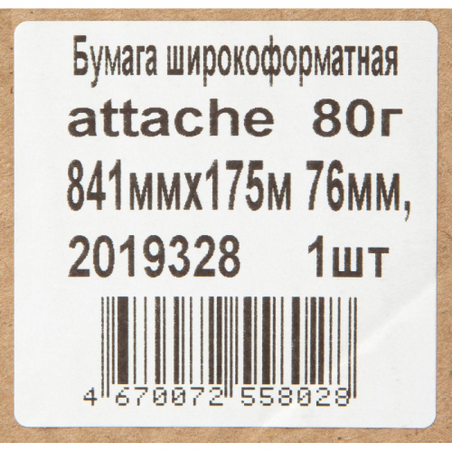 Широкоформатная бумага Attache, предназначенная для печати технической документации, монохромных материалов ГИС и САПР, инженерной и деловой графики. Используется на широкоформатных ксерографических инженерных системах Xerox, KIP, Seiko, OCE, Riсoh, Kyocera Mitа. Бумажное полотно белизной (138%) , имеет формат A0 (841 мм). Оптимальная плотность, составляющая 80 г/кв.м, исключает просвечивание изображения. Бумага поставляется в рулонах по 175 м, упакованных в картонную коробку. Законодательные и технические документы