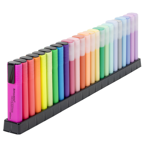 Набор текстовыделителей 24 ЦВЕТА на подставке, BRAUBERG "ORIGINAL", 15 пастельных цветов + 9 неоновых цветов, линия 1-5 мм, 152508