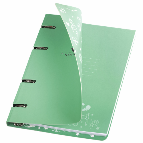 Снабжена кольцевым механизмом с 4-мя кольцами для подшивки сменных блоков, что позволит брать на учебу/работу всего одну тетрадь с возможностью добавлять и менять листы.
