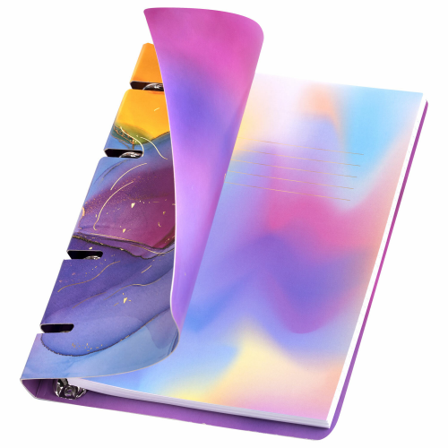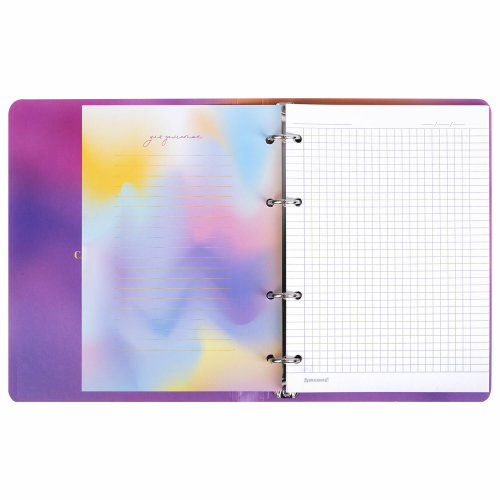 Тетрадь на кольцах А5 160х212 мм, 120 листов, картон, фольга, клетка, BRAUBERG, "Liquid art", 404738
