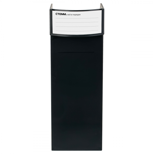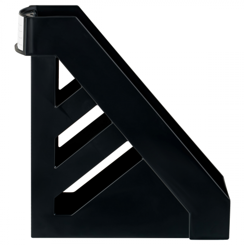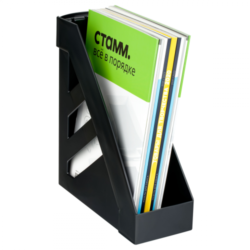 Лоток для бумаг вертикальный СТАММ серии "Стандарт" предназначен для хранения и систематизации бумажной продукции формата А4. Классический дизайн. Подходит для хранения тяжёлых каталогов и папок. На торце лотка есть захват для удобного вытягивания с полки. Захват также служит окном для маркировки, предусматривающим возможность смены вкладышей. Изготовлен из качественного пластика. Индивидуальная упаковка - пакет. Цвет лотка - чёрный. Изделие высотой 285мм, глубиной 275мм, шириной 100мм вмещает до 800 листов.