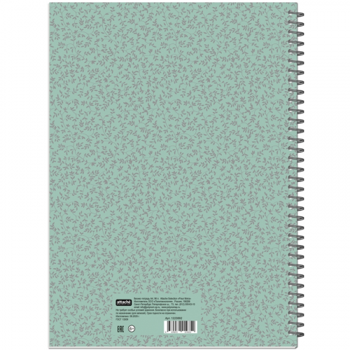 Бизнес-тетрадь Attache Fleur Мята формата А4 на спирали (металлическом гребне) предназначена для записей. Обложка изготовлена из картона с цветной печатью и матовой ламинацией, плотность 230 г/кв.м. Внутренний блок - белая бумага, офсетная 60 г/кв.м, белизна - 100%. Тетрадь состоит из 96 листов с линовкой "в точку". Размер тетради - 203х290 мм. Законодательные и технические документы