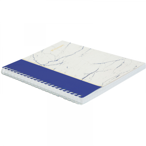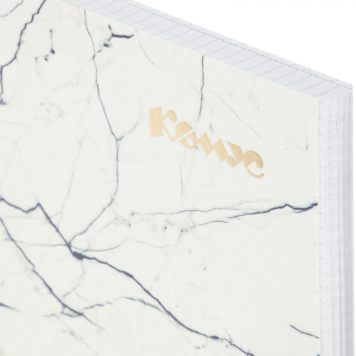 Тетрадь общая Комус Мрамор изготовлена форматом А4 (204х291 мм). Обложка и подложка изготовлены из мелованного картона 210 г/м2. Блок-офсетная бумага 80г/м2, разлинованная в клетку. Количество листов в блоке-120. Тетрадь скреплена металлическим гребнем (спиралью) по длинной стороне слева. Применяется в школах, высших учебных заведениях и офисах. Законодательные и технические документы