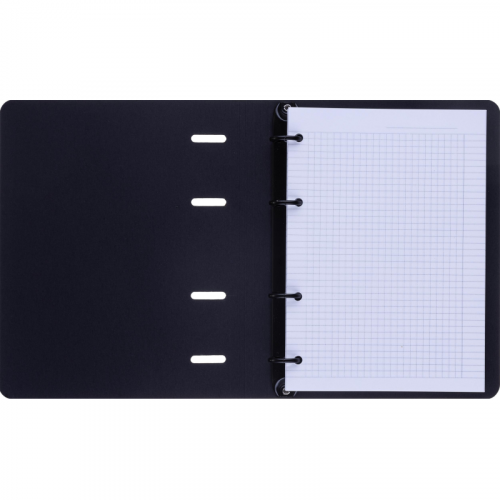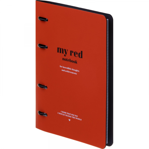 Тетрадь на кольцах со сменным блоком Infolio Study Color А5 120 листов красная в клетку с перфорацией, трафаретная печатьТетрадь формата A5 (175x212 мм) - стильный и практичный выбор для записей. Яркая красная обложка выполнена из искусственной кожи с трафаретной печатью, что придаёт тетради элегантный и современный вид. Кольцевой механизм позволяет легко добавлять, удалять и менять порядок листов, а также вставлять дополнительные блоки и разделители (не входят в комплект).Обложка защищена чёрным дизайнерским картоном плотностью 500 г/кв.м, а скруглённые уголки предотвращают повреждения при хранении в сумке или рюкзаке. Внутренний блок состоит из 120 листов (240 страниц) белой офсетной бумаги плотностью 65 г/кв.м с клеточной линовкой и серыми линиями, что делает запись удобной и аккуратной. Размер листа - 14x20 см, белизна бумаги - 100%.