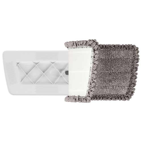 Губка между верхним и нижним слоями надежно впитывает и удерживает влагу, забирая в структуру ткани любые загрязнения, и не оставляет разводов. Внешний слой со скрученными нитями очищает поверхность от мелкого мусора и пыли. Крученые петли работают как деликатный абразив и усиливают впитывающие свойства микрофибры. Объемные петли по краям эффективны при уборке волос и шерсти. Насадки трапециевидной формы имеют увеличенную поверхность и созданы специально для уборки в углах.
