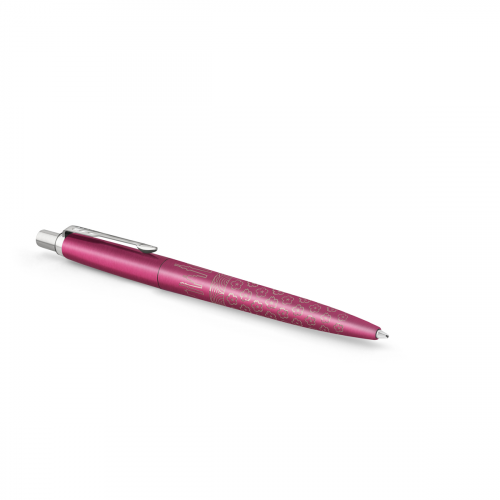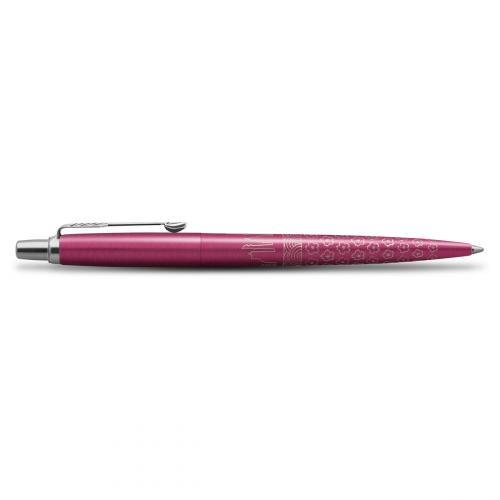 Подарочная шариковая ручка Parker из коллекции Jotter Tokyo Pink CT выполнена из нержавеющей стали с лаковым покрытием. Цвет корпуса – розовый, а цвет декоративных элементов – серебряный. Изделие с кнопочным механизмом отлично подойдёт в качестве подарка как для коллеги, так и для руководителя. Диаметр пишущего узла составляет 1 мм, толщина линии – 0,8 мм. Длина письма может достигать 4 000 метров. Ручка упакована в оригинальную картонную подарочную коробку Parker с видами Токио. Укомплектована шариковым стержнем синего цвета, который находится в ручке.