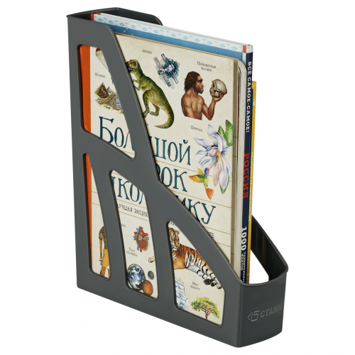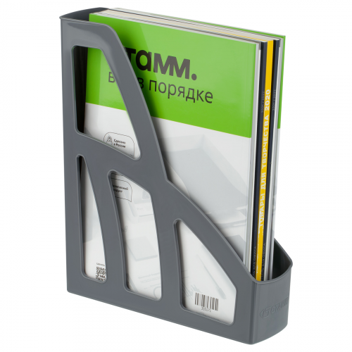 Лоток для бумаг вертикальный СТАММ "Лидер", серый, ширина 75мм