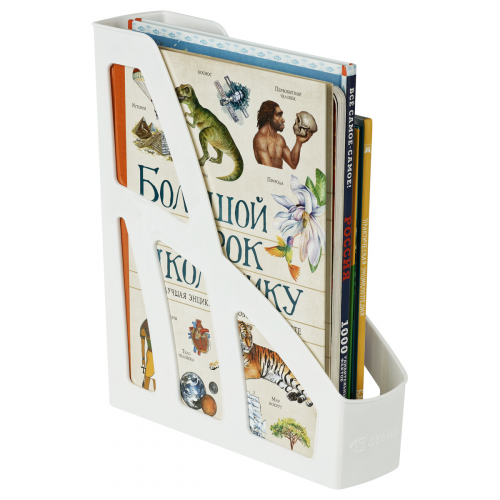 Лоток для бумаг вертикальный "СТАММ" серии "Лидер" предназначен для хранения и систематизации бумажной продукции формата А4. Оригинальный дизайн, лёгкий, устойчивый и прочный корпус. Имеет отверстие на торцевой части для удобной переноски. Изготовлен из качественного пластика. Цвет лотка - белый. Изделие высотой 297мм, глубиной 250мм, шириной 75мм вмещает до 550 листов.