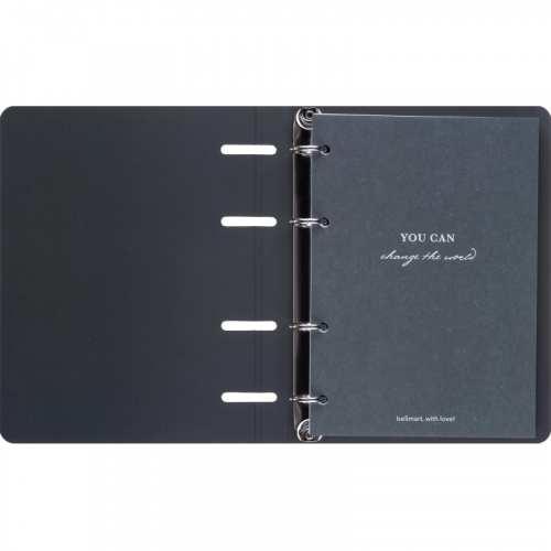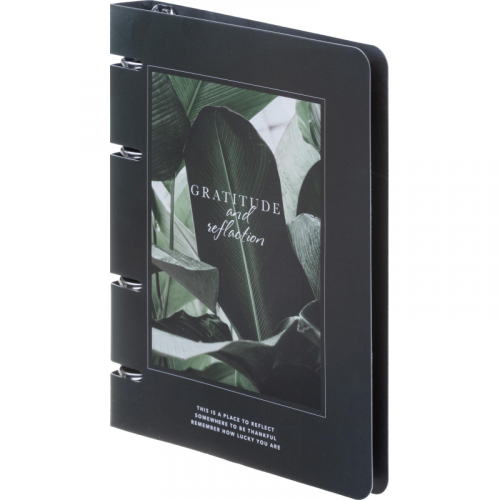 Тетрадь на кольцах со сменным блоком Be Smart Botanica А5 120 листов с рисунком в клетку с перфорацией, матовая ламинацияТетрадь формата A5 (163x212 мм) с кольцевым механизмом - это удобный и стильный аксессуар для записи лекций, заметок и задач. Компактный размер позволяет легко носить её в сумке или рюкзаке. Кольцевой механизм даёт возможность легко добавлять, удалять и менять порядок листов, а также вставлять дополнительные блоки или разделители для удобной организации.Обложка выполнена из мелованного картона плотностью 500 г/кв.м с ярким цветным принтом банана, а также покрыта матовой ламинацией, что делает изделие прочным и долговечным. Скруглённые уголки защищают обложку от повреждений и помогают сохранить её внешний вид при хранении. Внутренний блок состоит из 120 листов (240 страниц) белой офсетной бумаги плотностью 65 г/кв.м с клеточной линовкой и серыми линиями. Листы имеют прямые уголки и белизну 100%, а блок включает титульный лист. Размер листа - 14x20 см.