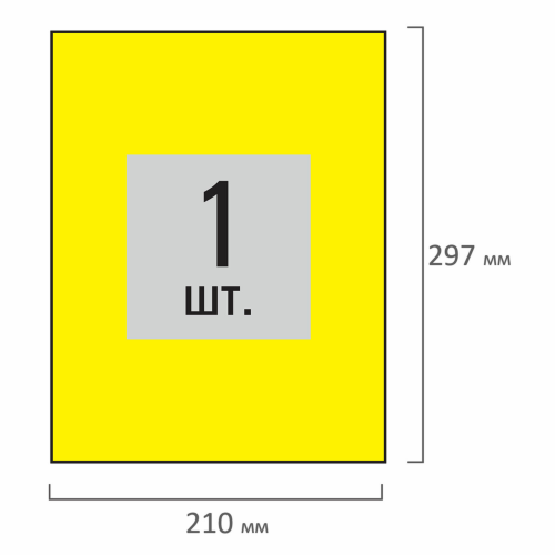 Изготовлены из самоклеящейся матовой бумаги плотностью 80 г/м2. Надежно приклеиваются к поверхности любой формы и материала. Картонная упаковка содержит 50 листов формата А4, на каждом листе – одна желтая этикетка размером 210х297 мм.