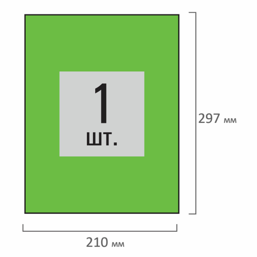 Изготовлены из самоклеящейся матовой бумаги плотностью 80 г/м2. Надежно приклеиваются к поверхности любой формы и материала. Картонная упаковка содержит 50 листов формата А4, на каждом листе – одна зелёная этикетка размером 210х297 мм.