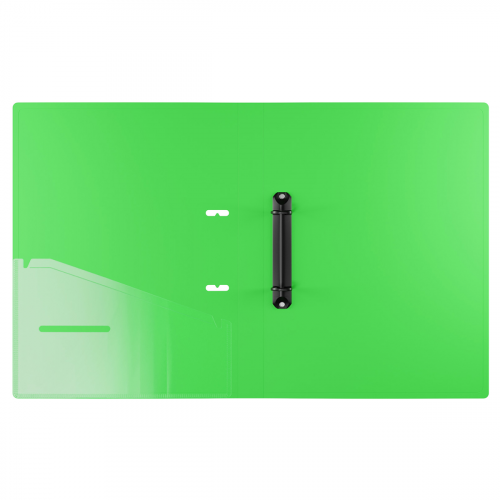 Папка на 2 кольцах Berlingo Future Tech формата А4 станет стильным помощником для хранения документов. Размер изделия – 310*250*24 мм, ширина корешка – 24 мм. Папка вмещает до 150 бумажных листов. Папка изготовлена из высококачественного полипропилена с матовой текстурой поверхности «песок», на которой не видно отпечатков пальцев и мелких царапин. Толщина обложки 600 мкм. Яркий дизайн коллекционной серии Future Tech поможет разнообразить рабочее пространство. Внутренняя сторона оснащена плотным прозрачным карманом для удобного хранения мелочей: ручки, заметок, визиток, дисков, флешек и другого. Кольца и фурнитура выполнены в чёрном цвете. Специальная D-форма колец диаметром 20 мм помогает удобно и ровно хранить документы, которые могут быть выровнены по левому краю благодаря боковой вертикальной стенке кольца. Формовые отверстия в обложке служат для надежного защелкивания папки в сложенном виде, предотвращают случайное открытие обложки и замятие документов при хранении и транспортировке. Папка упакована в индивидуальный прозрачный пакет по форме.