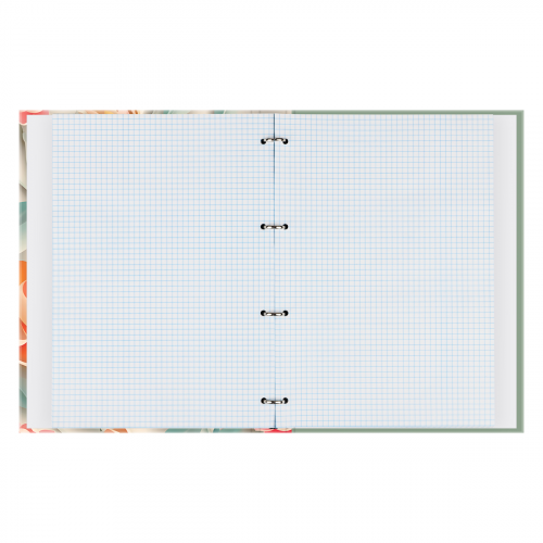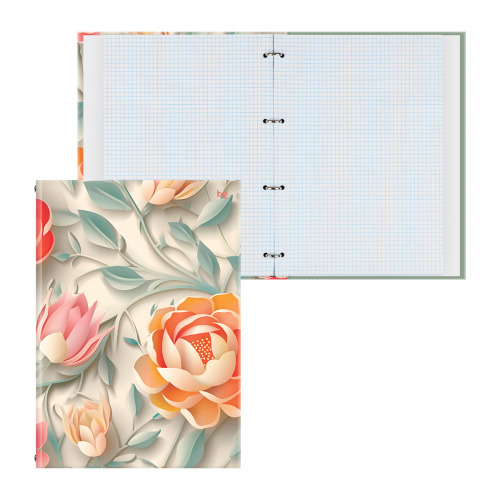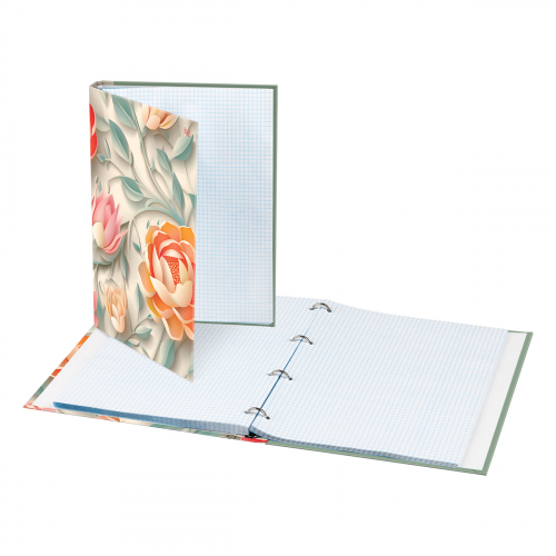 Тетрадь на кольцах BG «Бумажные цветы» – незаменимый помощник в офисе и учёбе. Формат А4 (205*290 мм) удобен для большого объёма записей. Внутренний блок состоит из 160 листов офсетной бумаги плотностью 60-65 г/м2 и белизной 100%. Линовка – клетка без полей. Удобный механизм с четырьмя кольцами позволяет легко добавлять, удалять или менять листы, адаптируя тетрадь под индивидуальные потребности. Обложка изготовлена из твёрдого картона с матовой ламинацией. Прямоугольный корешок обеспечивает удобное раскрытие и предотвращает перегибы. Упакована в термоусадочную пленку для дополнительной защиты при транспортировке и хранении.