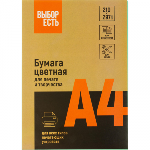 Цветная бумага для офиса Выбор есть A4 предназначена для печати на всех видах оргтехники и ризографах. Идеально подходит для документов, презентаций, рекламных материалов, открыток. Одна пачка содержит 100 листов формата А4, плотность которых составляет 80 г/кв.м. Страна производства - Россия. Рекомендована ведущими производителями офисной техники. Цвет на изображении товара может отличаться от оригинала из-за особенностей цветопередачи монитора. Внешний вид и/или характеристики товара могут быть изменены производителем в соответствии с производственным процессом.
