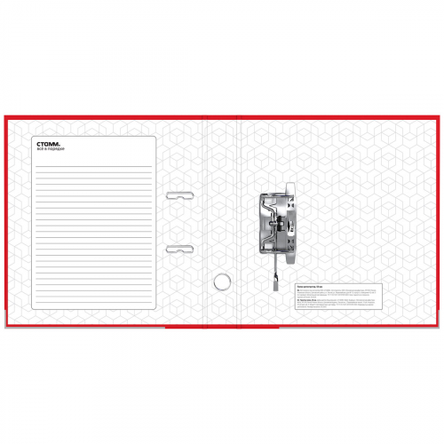Папка-регистратор «СТАММ» серии «Бизнес» формата А4 с арочным механизмом эффективно экономит офисное пространство и идеальна для создания архива. Папка вмещает до 450 листов. Размер папки – 320*290*50 мм. Ориентация – вертикальная. Ширина корешка составляет 50 мм. Минималистичный классический дизайн: папка выполнена в глубоком красном цвете. Изготовлена из жесткого износостойкого картона с односторонним покрытием из бумвинила. Нижние грани укреплены металлическим кантом. Внутреннее покрытие – бумага. Папка имеет арочный механизм из качественного металла. Конструкция разработана с учетом всех особенностей эксплуатации. Эргономичное отверстие в корешке помогает быстро снять папку с полки. На корешке папки есть карман со сменным информационным ярлыком для маркировки. На внутренней стороне обложки папка-регистратор имеет поле для записи.