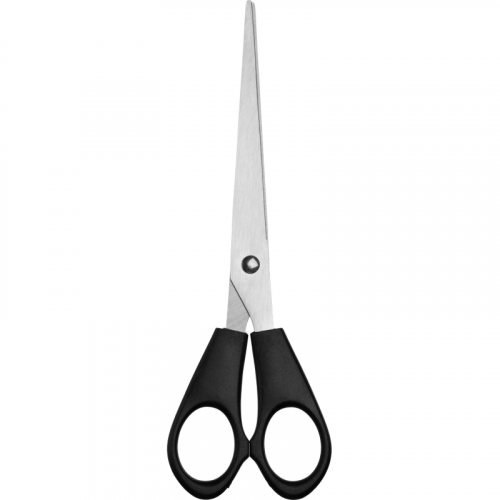 Ножницы универсальные Выбор есть 165 мм пластиковые ручки черного цвета. Универсальные ножницы Выбор есть - это практичный инструмент для решения множества бытовых задач. Особенности изделия: оптимальная длина 165 миллиметров - удобны для большинства видов работ. Универсальность: подходят для резки бумаги, картона, ткани, нитей и других материалов. Прочные лезвия изготовлены из нержавеющей стали, что обеспечивает долговечность и стойкость к коррозии. Двухсторонняя заточка обеспечивает аккуратный и ровный рез. Безопасность: тупоконечные лезвия снижают риск травмирования. Пластиковые ручки черного цвета обеспечивают комфортный хват. Ножницы Выбор есть - надженый помощник дома и в офисе!