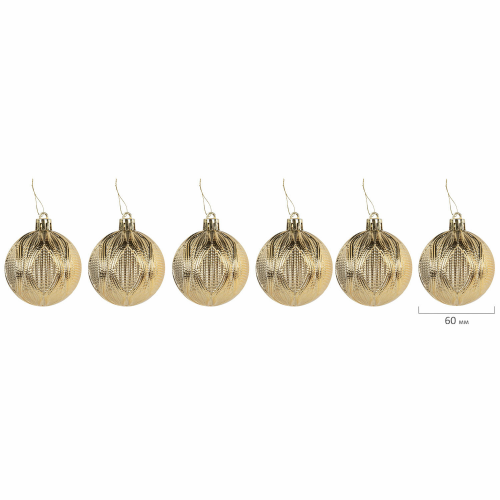 6 шаров золотистого цвета диаметром 6 см с глянцевым эффектом,