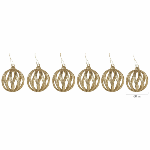 6 шаров золотистого цвета диаметром 6 см с S-образными выемками с глянцевым эффектом,