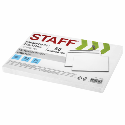В конверт формата C4 можно вложить документ формата А4. Плотность бумаги 90 г/м2 позволяет размещать тяжелую корреспонденцию, а внутренняя запечатка поможет скрыть содержимое от посторонних глаз. Отрывная полоса типа STRIP обеспечивает надежное запечатывание конверта и сохранность личного письма или важного документа.