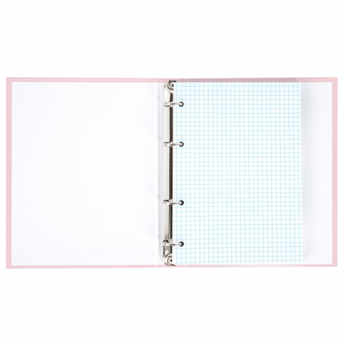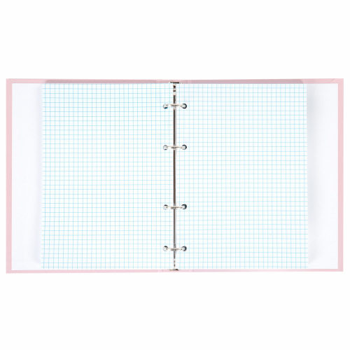 Блок состоит из 120 листов офсетной бумаги белого цвета плотностью 60 г/м2. Линовка - клетка. Жесткая книжная обложка выполнена из яркого переплетного картона и покрыта матовой пленкой. Формат А5 является стандартным и обеспечивает комфортное ношение в рюкзаке/ранце или папке. Оборудована кольцевым механизмом с 4-мя кольцами для подшивки сменных блоков, что позволит носить на учебу/работу всего одну тетрадь с возможностью добавлять и менять листы. Диаметр колец составляет 25 мм.